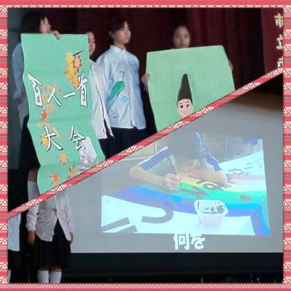 とにかく百人一首大会の看板、体育大会の入場門、