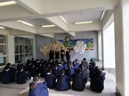 水曜日は1年生の学年集会があります。少し遅れてきた生徒もいましたが、予鈴で始まりました。生徒会の役員の2・3年生が参加してくれ、1年生にボールの使用に関しての連絡がありました。