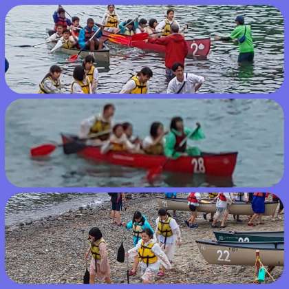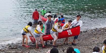 あんなに大きなカヌーですが、みんなで協力すると持ち上げることもできます。