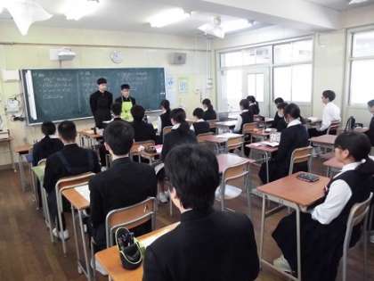ということで、いろいろ変更がありました。写真は給食の前に行った終学活です。教卓前に立つ日直さんがエプロンしているのにお気づきでしょうか。1分間スピーチを聞きながらみんなの心は早、給食にうばわれ…てもいません。まじめに聞いています。話者も結構いいことしゃべってます。
