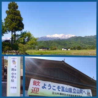 立山町の風景です。農家で虫を捕ったり、お手伝いをしたりして過ごしています。大きなカブトムシの幼虫に大喜びしています。