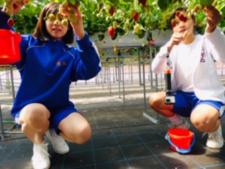いちごの収穫を体験させていただいています。かおり野 という とても甘い香りの美味しいいちごです。