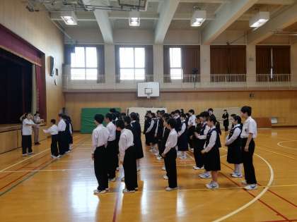 今日の全校集会の後、1,2年生が、体育館に残り、一泊移住のオリエンテーリングの表彰を受けました。