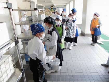 給食当番のひとたちはコツをつかんできたのか、素早く動けるようになってきました。一番早かったのはやはり3年生ですが、みんなテキパキと行動できていますよ。