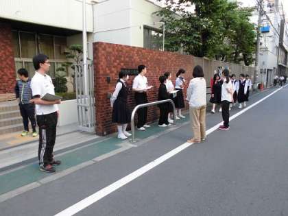先生方も見守っています。南中学校で毎日見られる光景です。