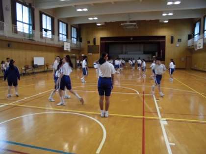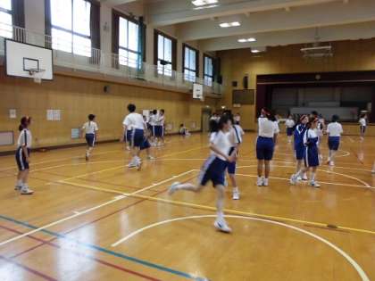 ウォーミングアップを兼ねて、全員でたいへんおもしろそうなアクティビティにとりくんでいました。みんな跳ね回っていますね。