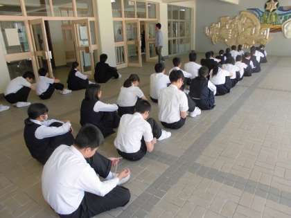 南中のシンボル前ピロティで順番を待つひとたち。保健室掲示物に心ひかれるひとたち。検診に緊張するひとたち・・・