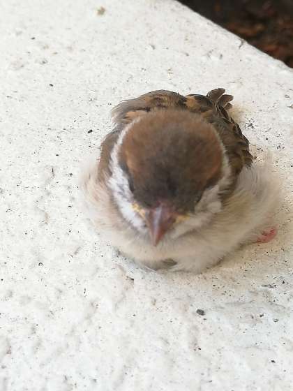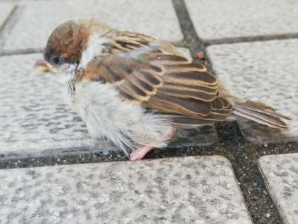 1年生の女子生徒が、道端にいたスズメのひなを拾って登校しました。もう少しで巣立つところでなんとかしたいところですが。