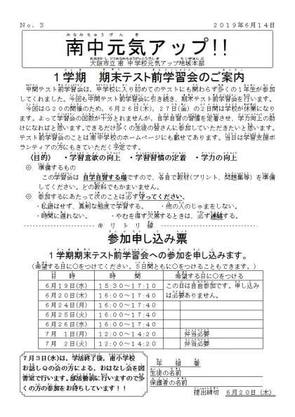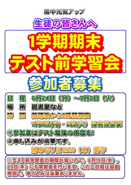1学期期末テスト前学習会の参加者募集