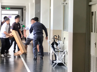 南警察の方のご協力で、不審者の侵入という想定の防犯訓練を行いました。