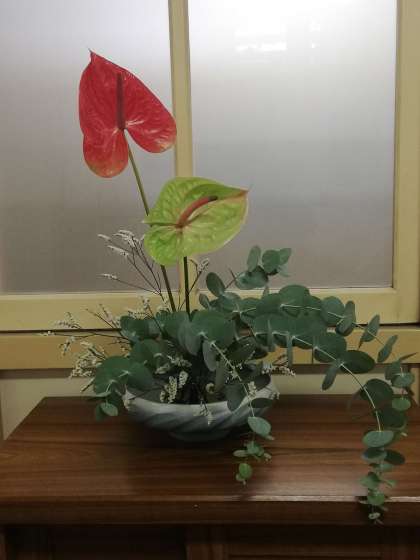 アンスリウムの花弁のように見える部分はぶつえんほうといいます。赤色のが多いです。