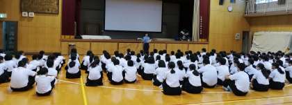 まずは、南警察の補導の係の方が、悪いことをしても得はしませんと具体的にお話が、ありました。次に交通係の方から自転車の危険性についてのお話しがありました。