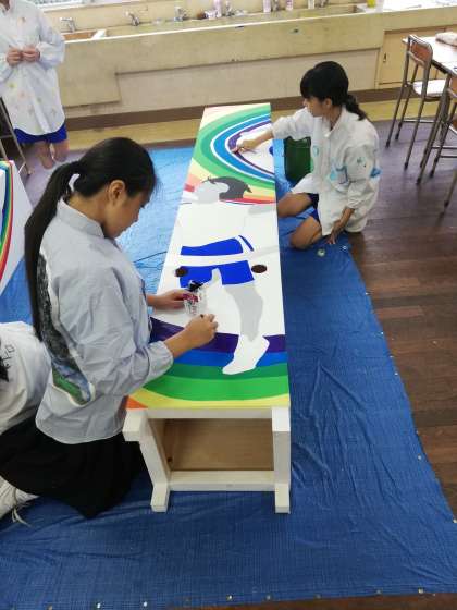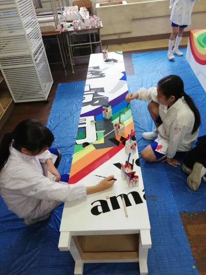 一昨年から運動会という名称が体育大会に変更になり、昨年入場門を新調したのに続き、今年は退場門を制作中です。