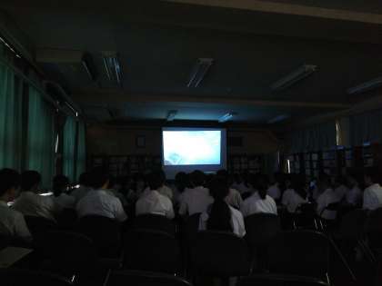 予定では、戦争を体験した語り部さんにお話ししていただくことになっていたのですが、体調を崩されてビデオになってしまいました。