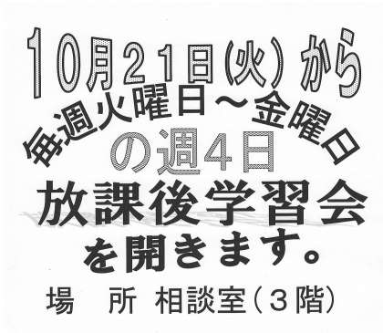 南中学校元気アップ地域本部では、テストに向けて学習会を行います。当日は学習ボランティアの方も来ていただき、「学習意欲の向上」「学習習慣の定着」「学力の向上」をめざします。