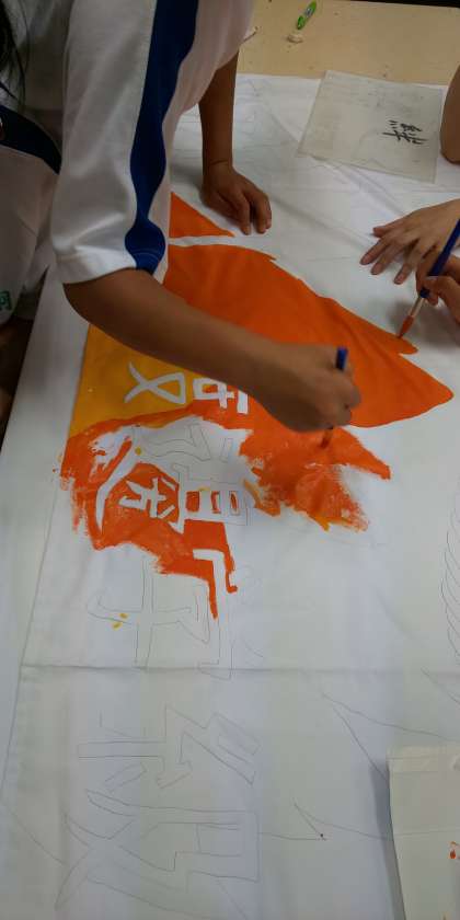 あちらでも、こちらでも、迫力を出すために、またグラデーションをなめらかにするために、手で塗っています。