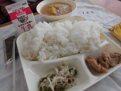 鶏肉は大変おいしゅうございました。もっと欲しかったですねー。でも本日のメインは、なんといってもお味噌汁でしょう。うすあげ、かぼちゃ、たまねぎ、にんじん、白ねぎ、の具がたっぷり入っていて、これだけで満腹感が半端なかったです。給食のお味噌汁って、どうしてこう実に良いお味なのでしょう?野菜いためも、豚肉ともやしのハーモニーが充実していて、これがメインでもおかしくないくらい。おいしかったー。今日も、おひつもおなべもからっぽ。