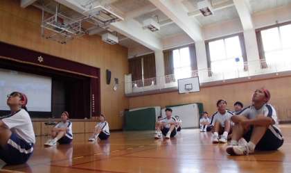 体育館にて、行進など体育大会にむけての学年練習にとりくみました。みんな頑張っていますよ。