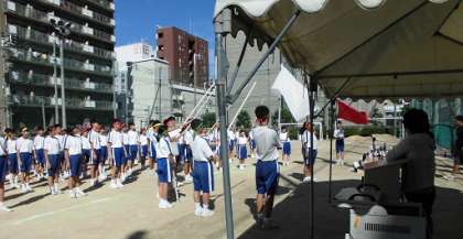 国旗掲揚、選手宣誓、校歌斉唱ですね。