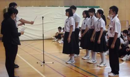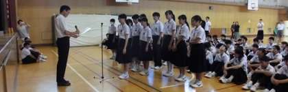 今朝の全校集会に先立ち、たくさんの表彰が行われました。