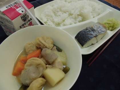 「さごし」はあっさりとしたお味の白身魚です。サワラ(鰆)の若魚をサゴシ(青箭魚)っていうんですって。今日の塩焼きは、脂ものって塩梅もばっちり、おいしゅうございました。がんもも絶品。