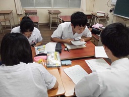 生活委員会と学級委員長会のようすです。アンケート回答を熱心に読み込んでいます。