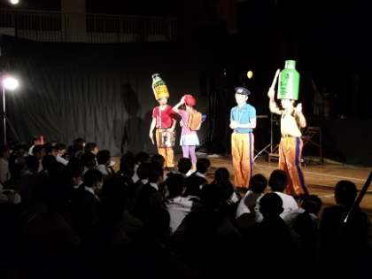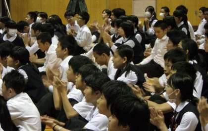 1時間鑑賞した後、代表生徒がステージに上がりワークショップをしました。鑑賞と体験を通して、楽しみながら芸術・文化に触れる行事でした。
