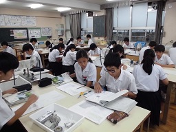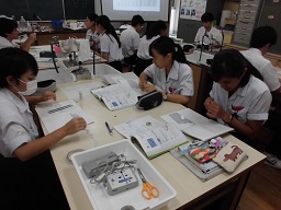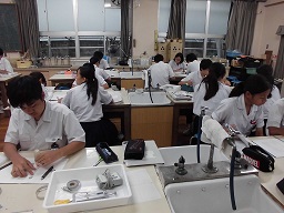 今回はテープを処理してグラフをつくっているところです。みんな熱心にとりくみます。台車を走行させている場面の写真は、次回のおたのしみに。