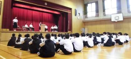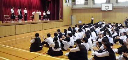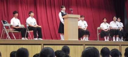 体育館にて6時間目、立候補者と応援演説者による後期生徒会役員選挙・演説会をおこないました。本人も応援する人も、情熱にあふれる実によい演説ばかりでした。ぜひ、みんなの力をあわせて南中をさらに良い学校にしていきましょう!
