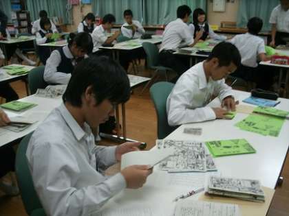 今日は、第1回の班長会議を行いました。まず、班員のしおりをつくり、当日の行程について詳しい説明を聞きました。駅を降りてからの行動は、地図を見ながらチェックポイントの先生のところを歩いて回ります。