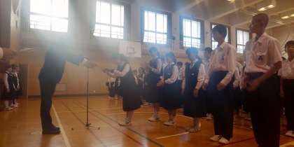 写真のように朝日が射し込むなか、盛大な拍手がおくられて、とても爽やかな朝となりました。