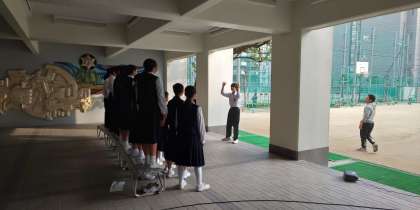 学校中、色々な場所に別れて練習しているのですが、ピロティは気持ちよく歌声が響くので大人気です。