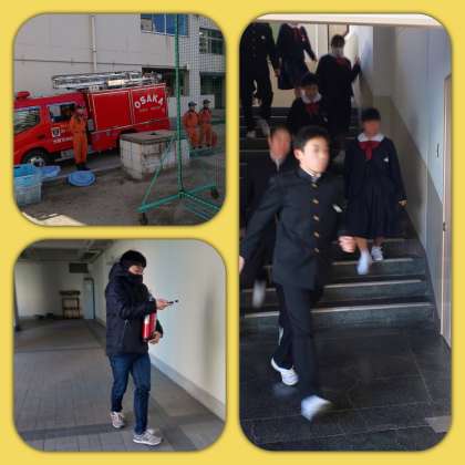 今日は期末テストの三日目でした。英語、音楽のテストの後、3時間目は避難訓練を行いました。