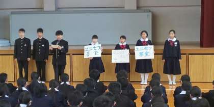 明日から生徒会執行部が中心となって、ユニセフ募金を始めます。