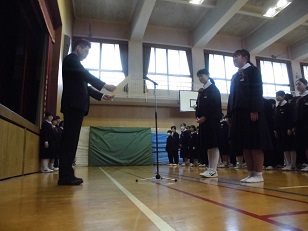 いよいよ高校入試が来週から始まります。面接試験は第一印象が大切ですよ。声の大きさ、言葉遣い、態度姿勢、視線・・・校長先生による面接練習で、3年生のひとたちはしっかり準備しています。ぜひベストをつくしてきてください。