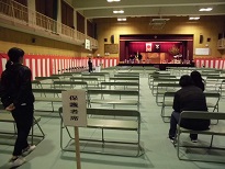 先週から少しずつ行ってきた準備の総仕上げです。南中学校の先生たちがはりきって床をみがき、紅白の幕をはりめぐらし、準備を整えました。その後、先生たちが見守る中、代表者のひとたちの送辞と答辞、ピアノ伴奏の練習を行いました。