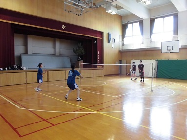 1対1やゲーム形式など、一定の社会的距離が保てない練習ができないかわり・・・この日のバスケ部は基礎練習終了後にバドミントンをしました!みんなバスケより夢中になってる??