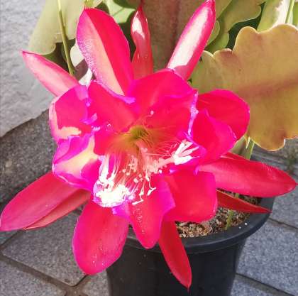 2枚目の花は、我が家で今朝咲いたクジャクサボテンですが、1枚目の花は、何でしょうか。