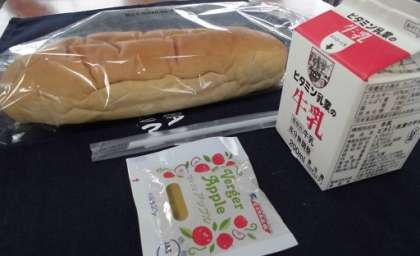 ・黒糖パン、牛乳、りんごジャム