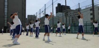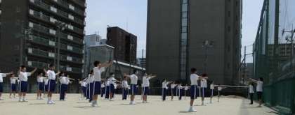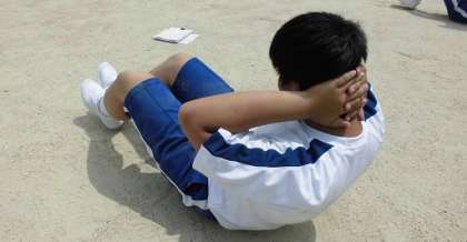 2G(第2グラウンド)にて、ラジオ体操と筋トレをおこないました。