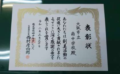 「美術」が学校や環境を美しく快適にするのに役立っているとして、株式会社サクラクレパスの創美コンテストにおいて表彰を受けました。