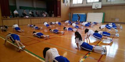 暑い中、保護者の方たちが見に来てくださいました。幼い妹が保健体育の生徒達を真似て体操する姿など微笑ましい光景も見られました。