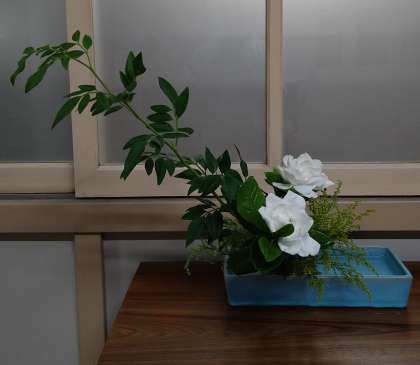 昨日生けられたのですが、もうクチナシの花は、元気がなくなってきました。