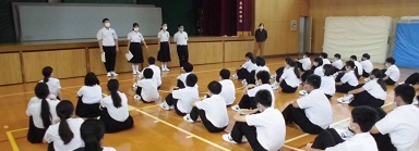 水曜日の朝は一年生の学年集会です。今朝のお話は「礼儀」。礼を失うと失礼、礼を無くすと無礼なのですね。