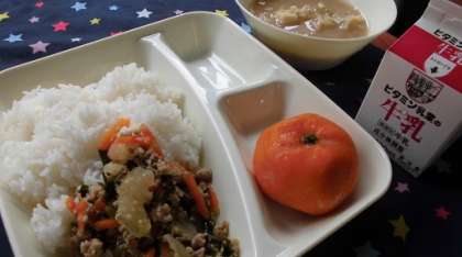 でした。ジューシーそぼろ丼。さくさくみかん。よろしゅうおあがり!