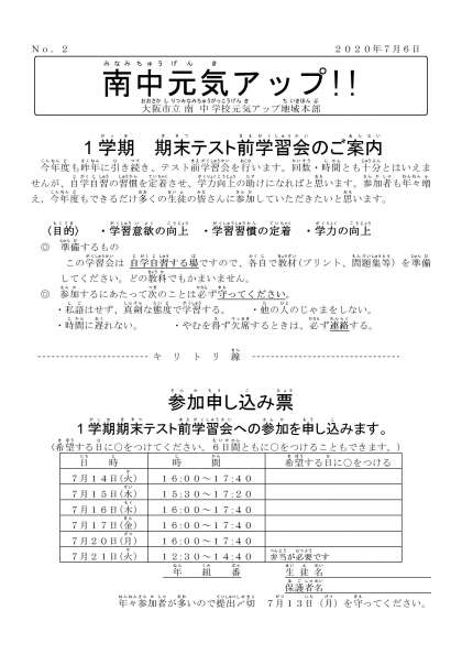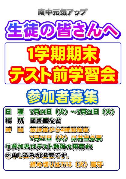 1学期期末テスト前学習会,参加者募集の案内