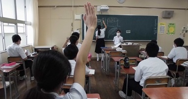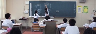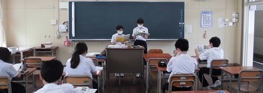 2人の声がユニゾンしたり、効果音を(口で)入れたり。楽しい発表です。挙手もびしっと元気いいですね。