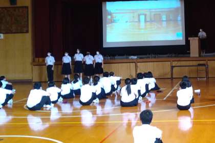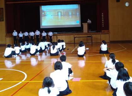 いろんな部活でのあいさつを見せてくれました。一人だけの2年生の部活も出てくれました。