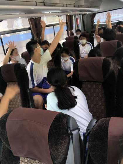 修学旅行、車内にて