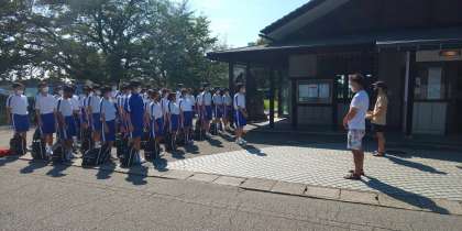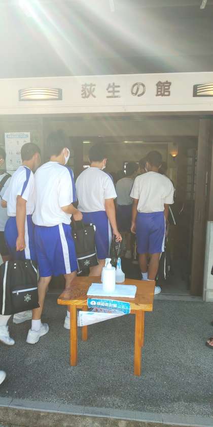 代表生徒があいさつをし、全員で元気に、「お願いします!」